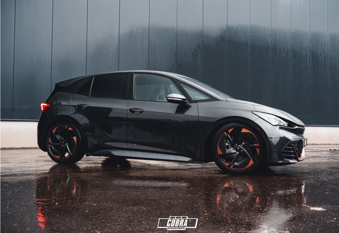 Cobra Suspension Veren Geschikt voor: Cupra BORN K11 HATCHBACK 08/2021- 45 (110KW/150PK)58 (150KW/204PK)/58 e-BOOST (170KW/231PK) | Verlaging: 35mm (vooras) / 35mm (achteras)